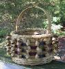A narrow woven base in wide stakes and weavers. The handmade handle